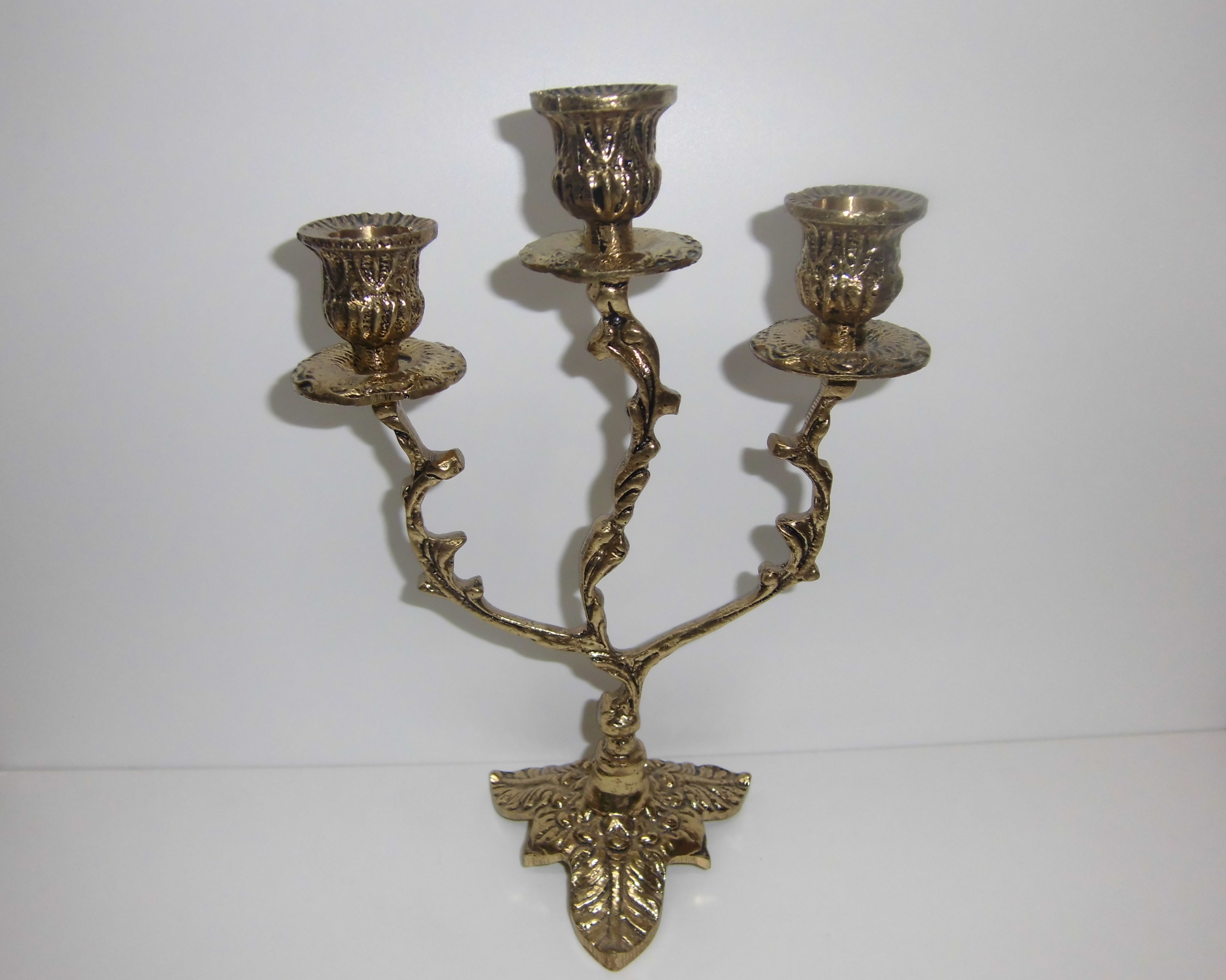 Kerzenleuchter, dreiflammig, aus Messing, 25,5 cm hoch und 17 cm breit