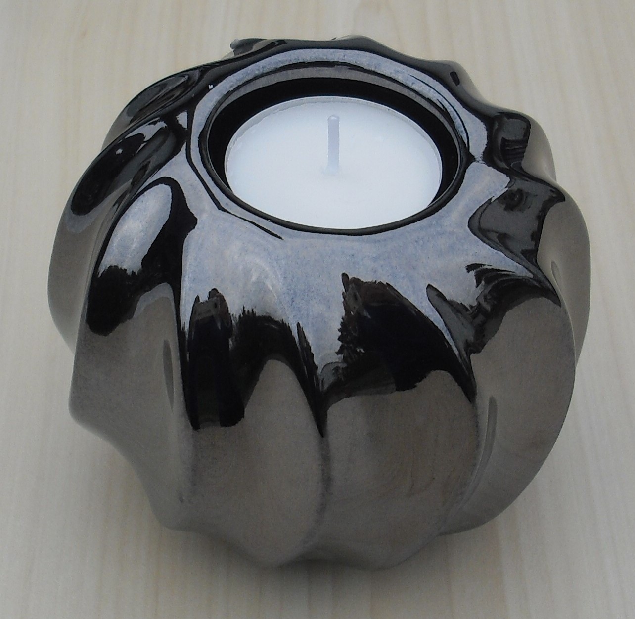 Teelichthalter DREAMLIGHT, Keramik, platinfarbig, 8,5, cm hoch ca. 9 cm breit