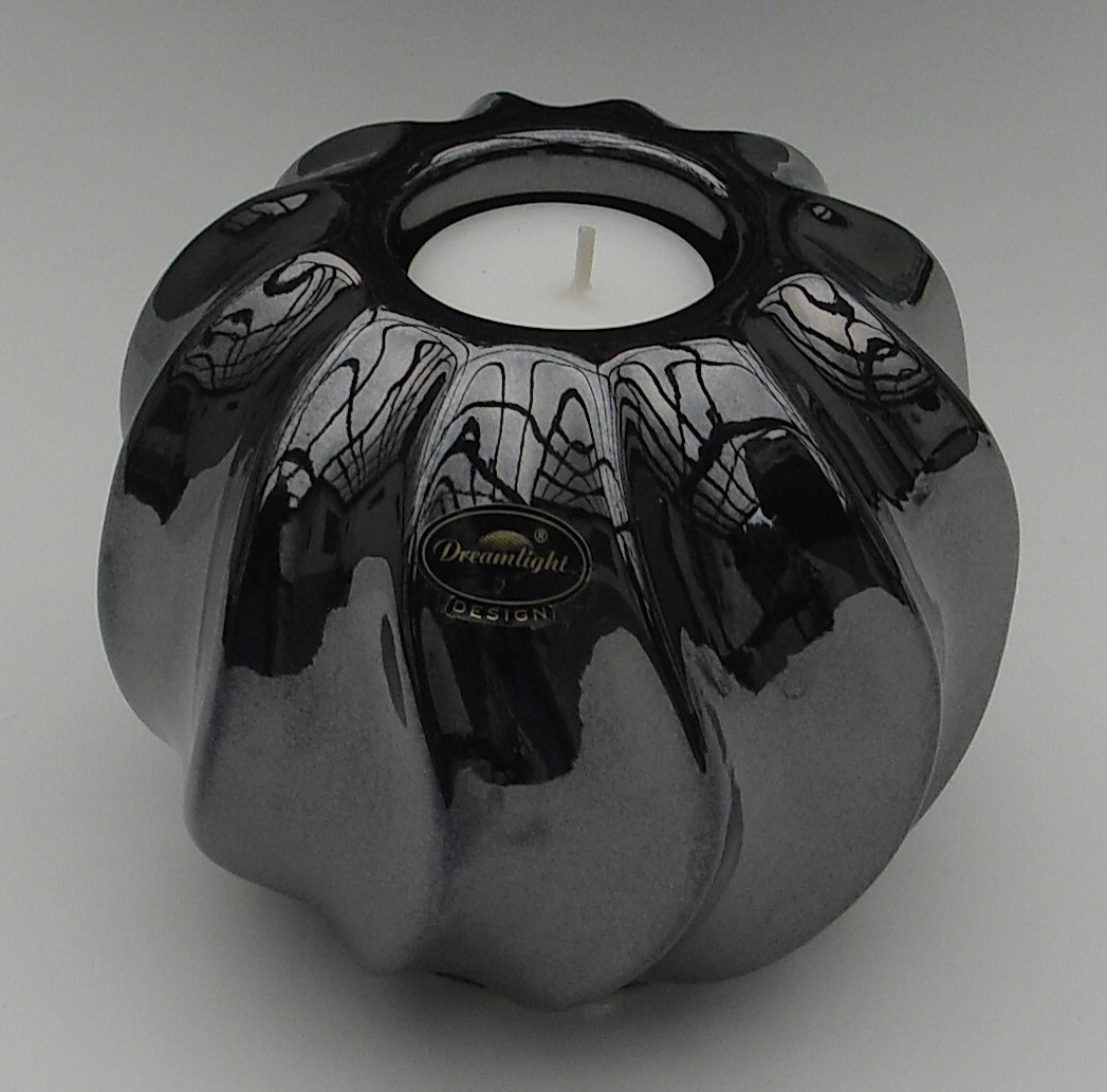Teelichthalter Dreamlight, aus Keramik, platinfarbig, 10,5 cm hoch, ca. 11 cm breit