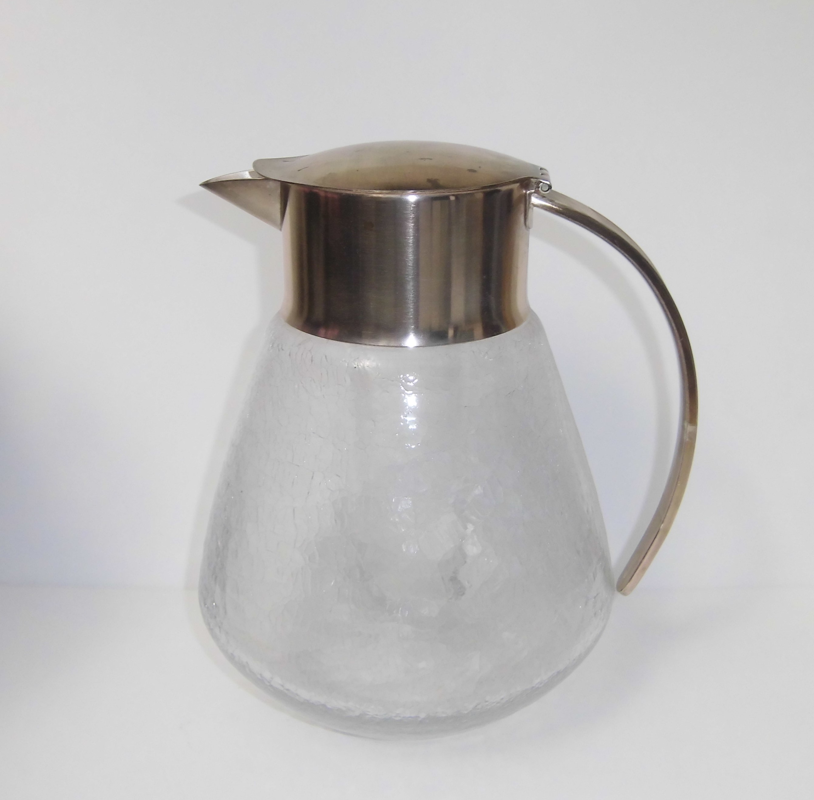 Karaffe Kalte Ente, aus Bruchglas, Deckel und Griff sind versilbert, innen mit Sieb und Glaseinsatz, 26 cm hoch, gebraucht, älter, mit kleinen Gebrauchsspuren