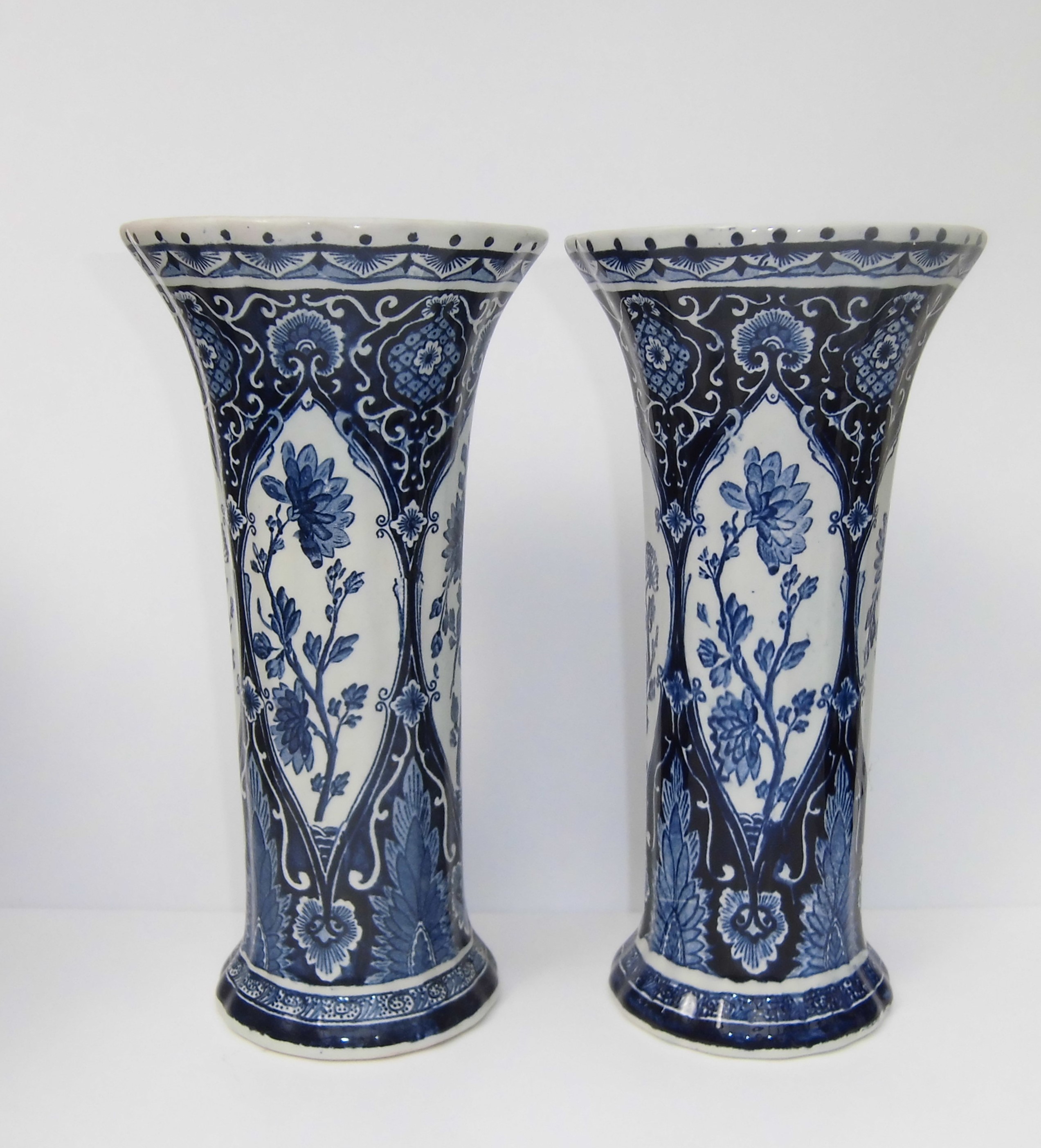 Vasen Paar, am Boden mit Stempel MADE FOR ROYAL SPHINX BY BOCH HOLLAND DELFTS, 26 cm hoch, oben 13 cm breit, gebraucht, älter