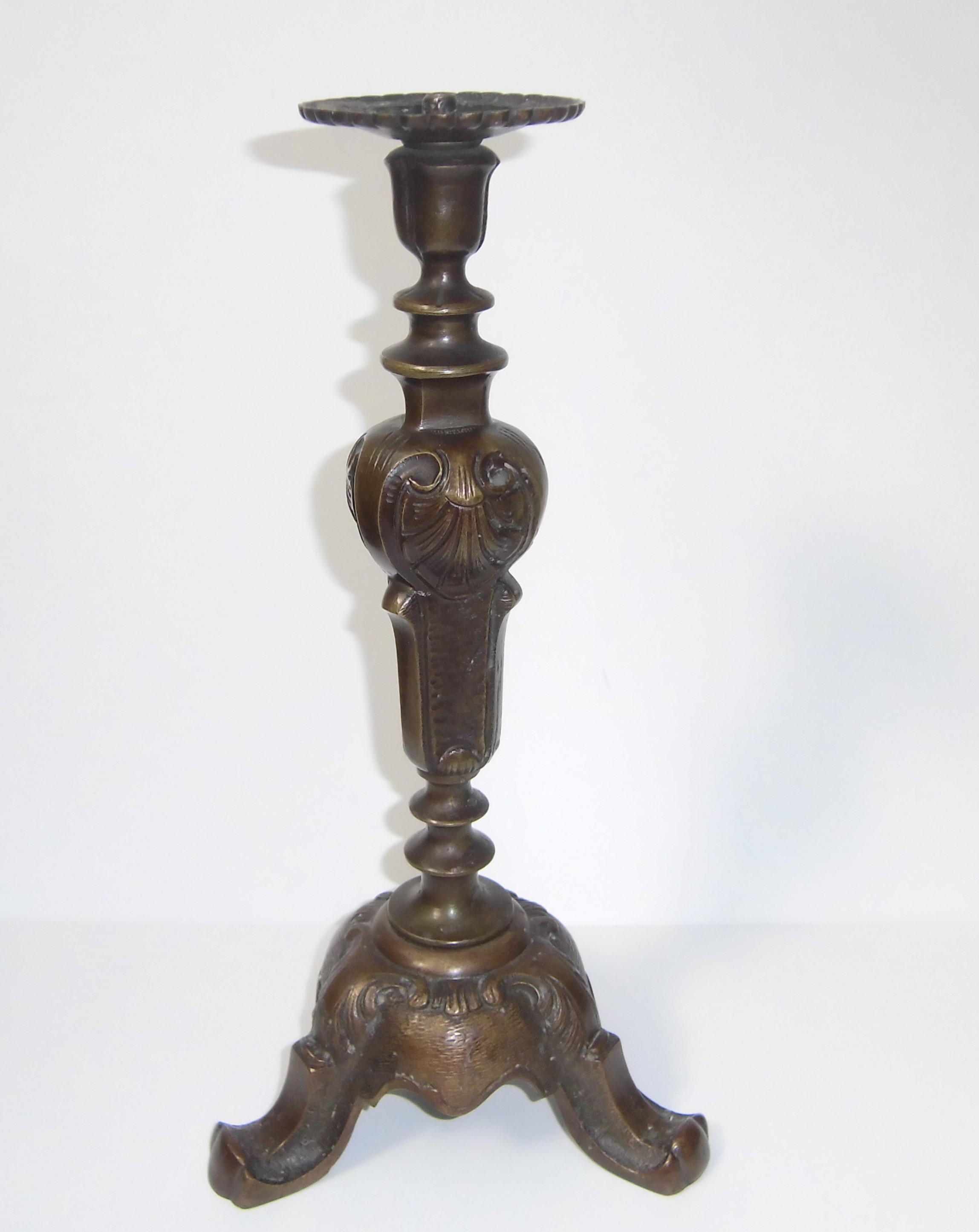 Kerzenständer, Bronze, 35 cm hoch, der Fuß ist 18 cm breit, 2825 Gramm schwer, fein verziert, gebraucht, älter, mit kleinen Gebrauchsspuren