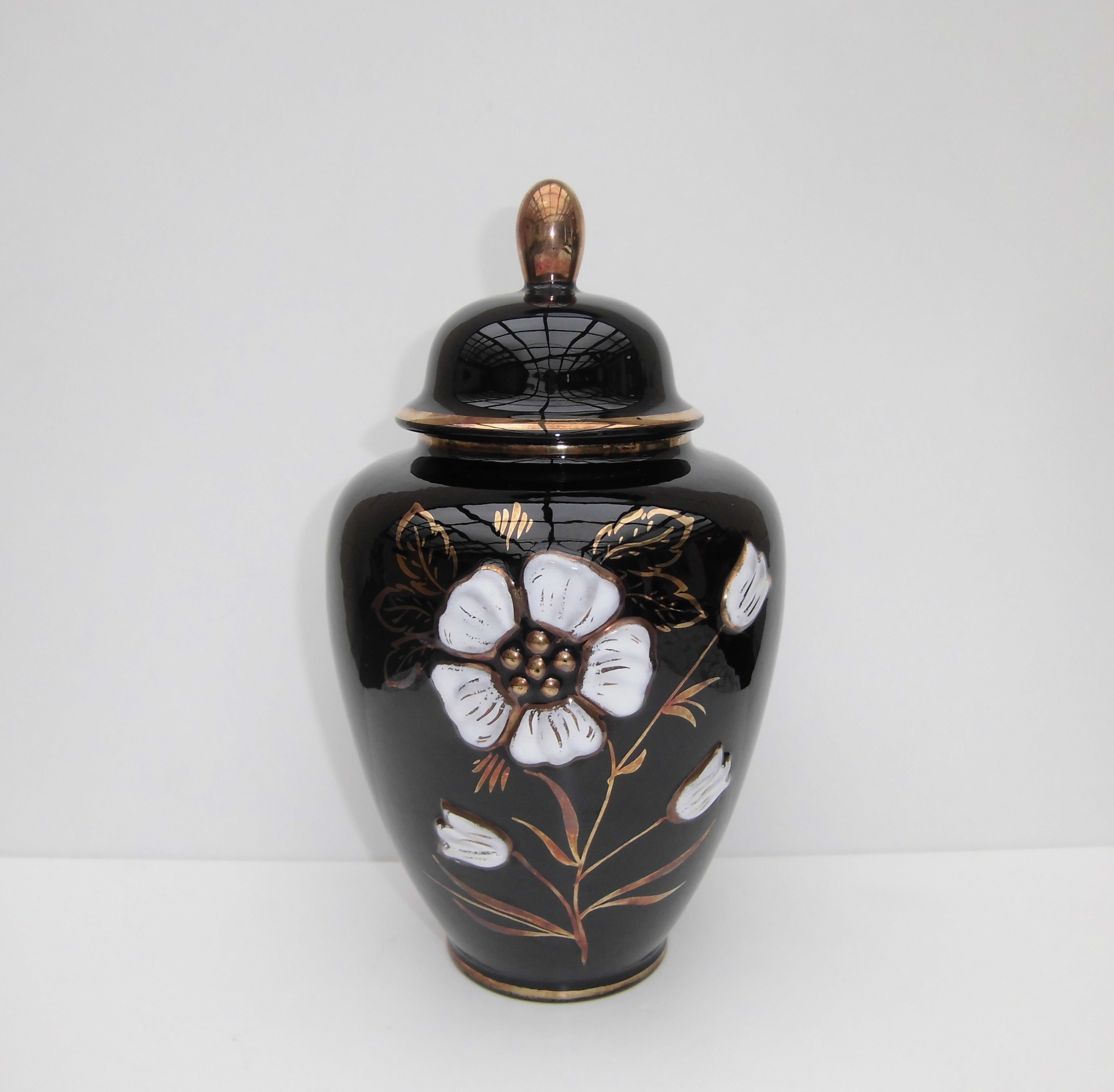 Deckelvase, mit Stempel "Carstens Kobalt echt handgemalt West Germany Dekor Lydia", 25 cm hoch, gebraucht, bis auf minimale Gebrauchsspuren gut erhalten