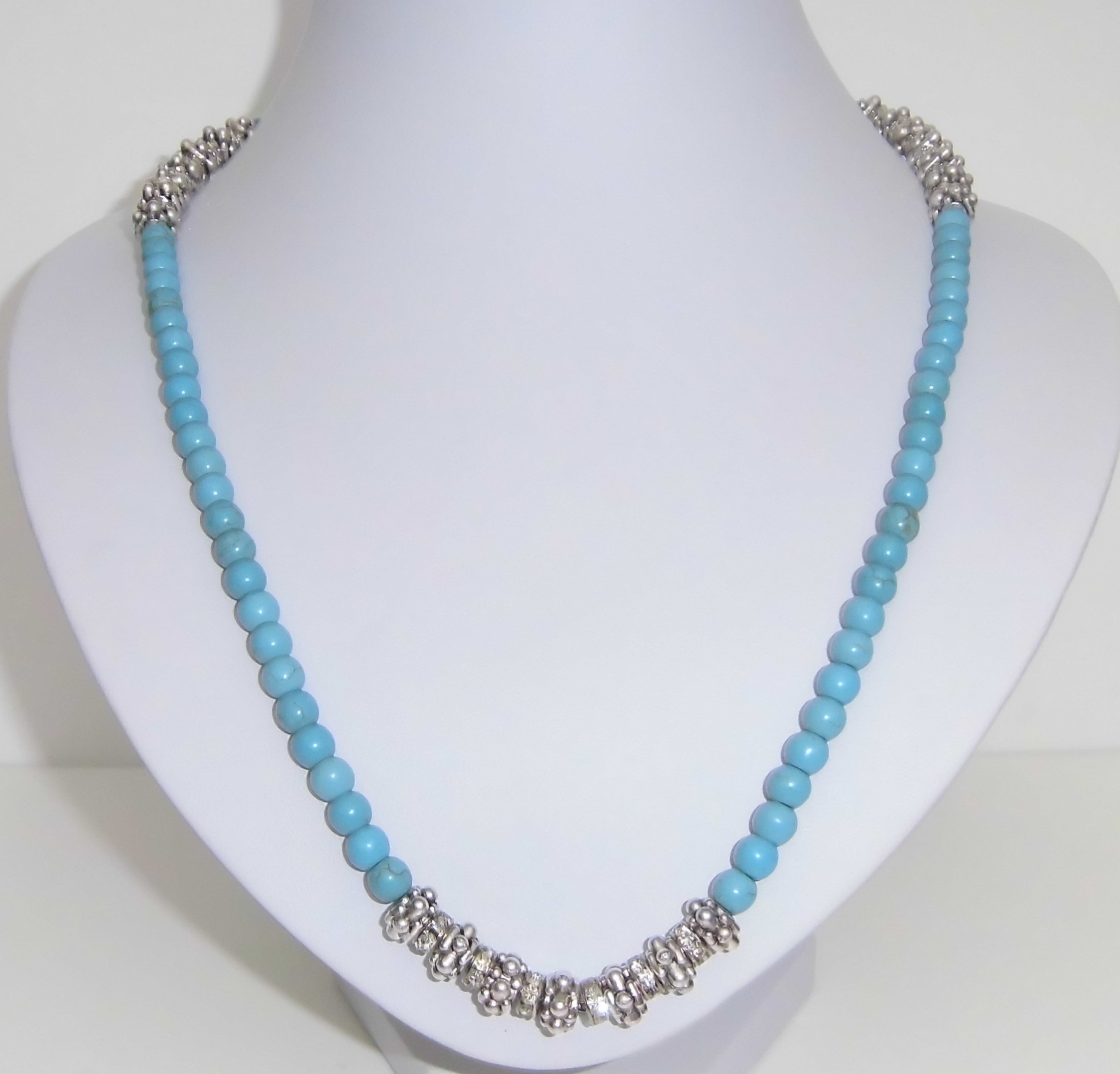 Halskette Stretchkette mit türkisen Perlen und silberfarbigen Schmuckelementen, die Modeschmuckkette ist endlos gearbeitet und ca. 54 cm lang.