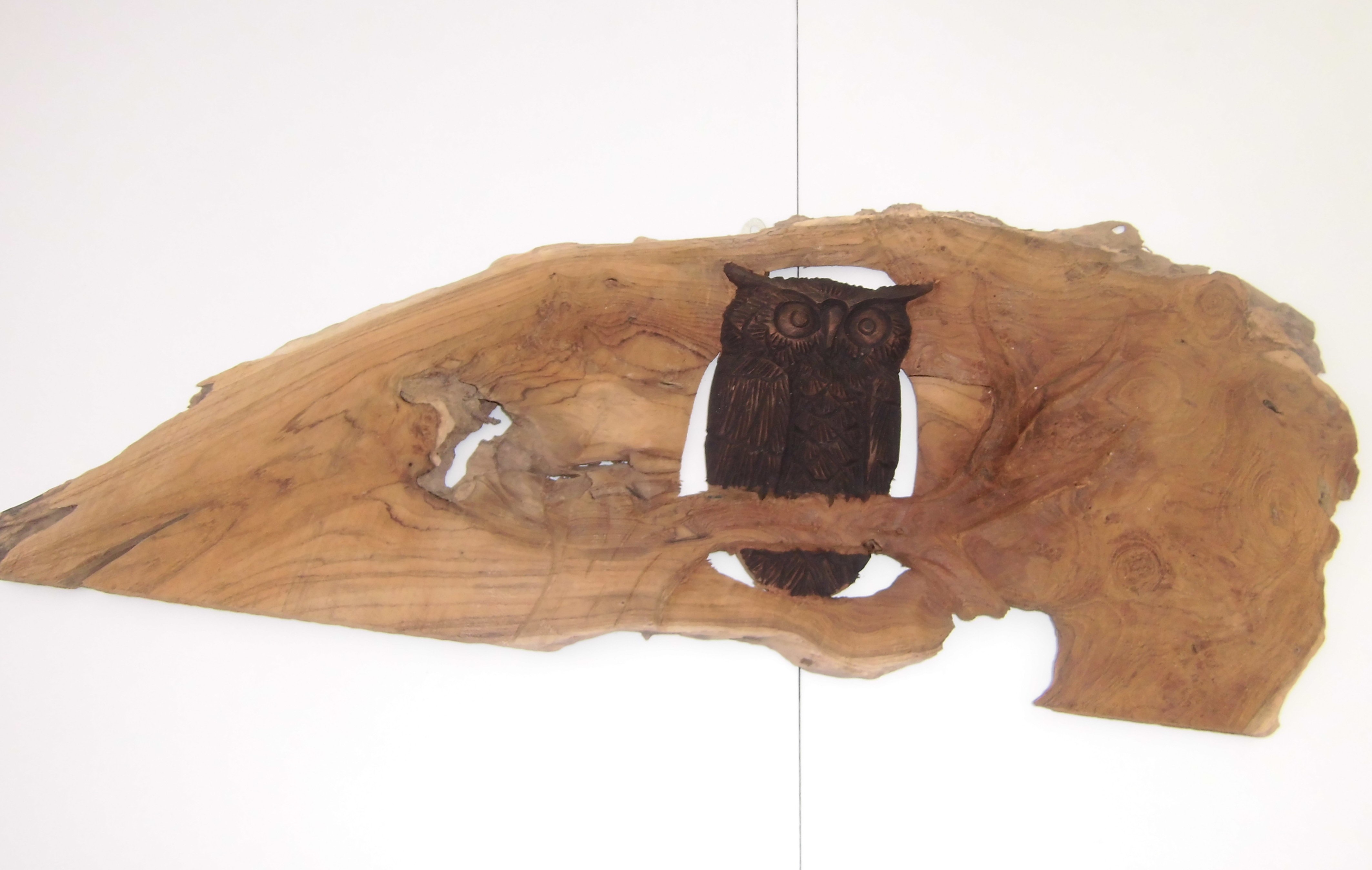 Eule Relief aus Teak Holz handgeschnitzt 59 x 21 cm