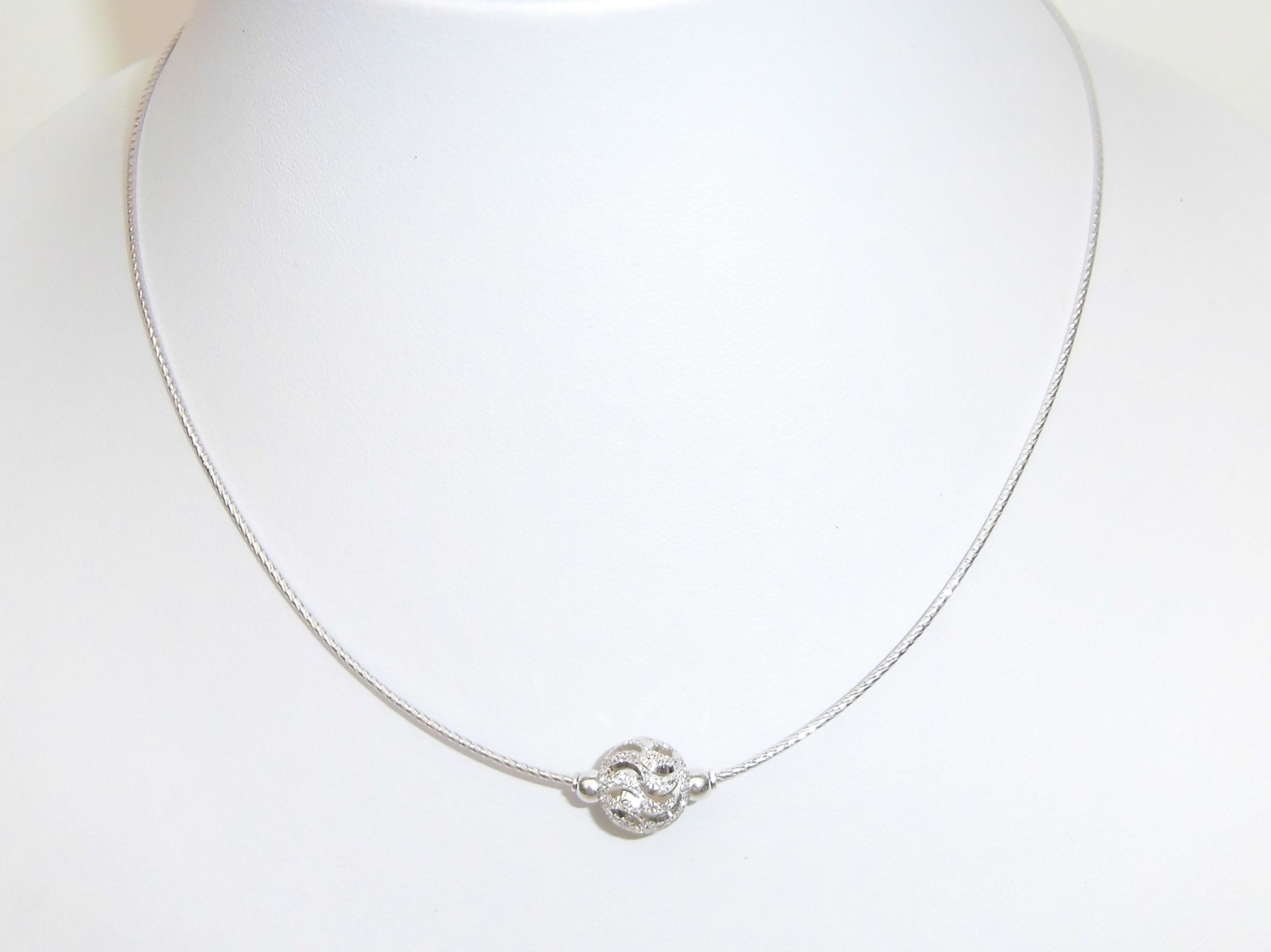 Halskette Collier mit einer verzierten Silberkugel aus 925 Sterling Silber, die feine Schlangenkette ist 42 cm lang, hat eine Verlängerung von 4 cm und einen Karabinerverschluss, die Kugel ist ca. 7 mm breit, das Gesamtgewicht beträgt ca. 6,5 g