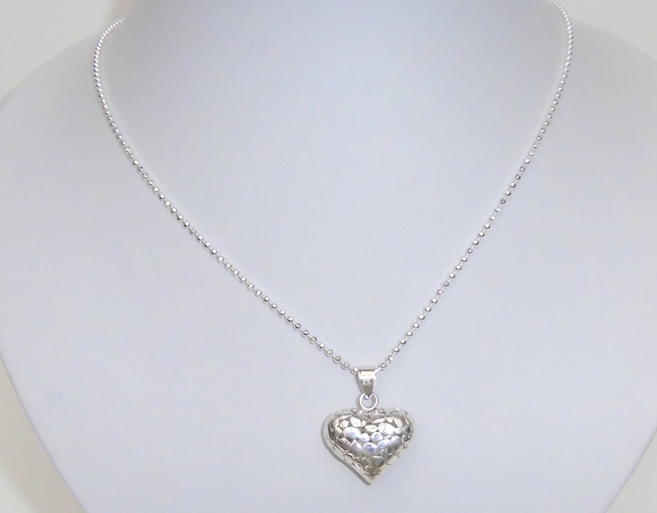 Halskette Kugelkette 60 cm lang, mit Filigran Herz, 925 Sterling Silber, das Filigran Herz ist 2 cm breit und 2 cm hoch, Gesamtgewicht 9 g