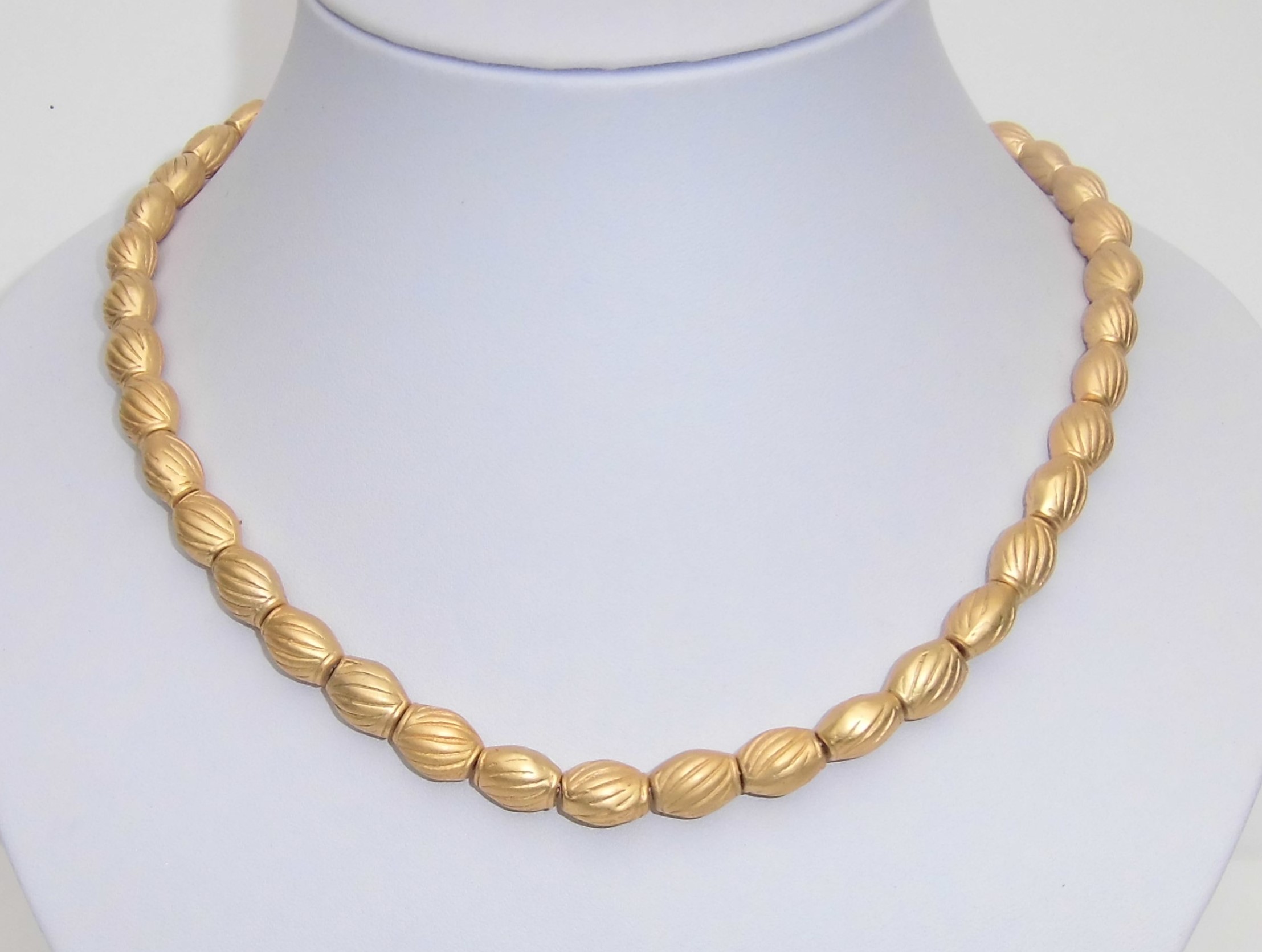 Halskette Collier, vergoldet, 45 cm lang, 90 Gramm schwer, die einzelnen ovalen Elemente sind 10 mm lang und 8 mm breit, die Kette hat einen feinen Karabiner-Verschluß.